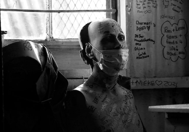 Intense fear and physical symptoms such as chest pain, heart palpitations, and sweating